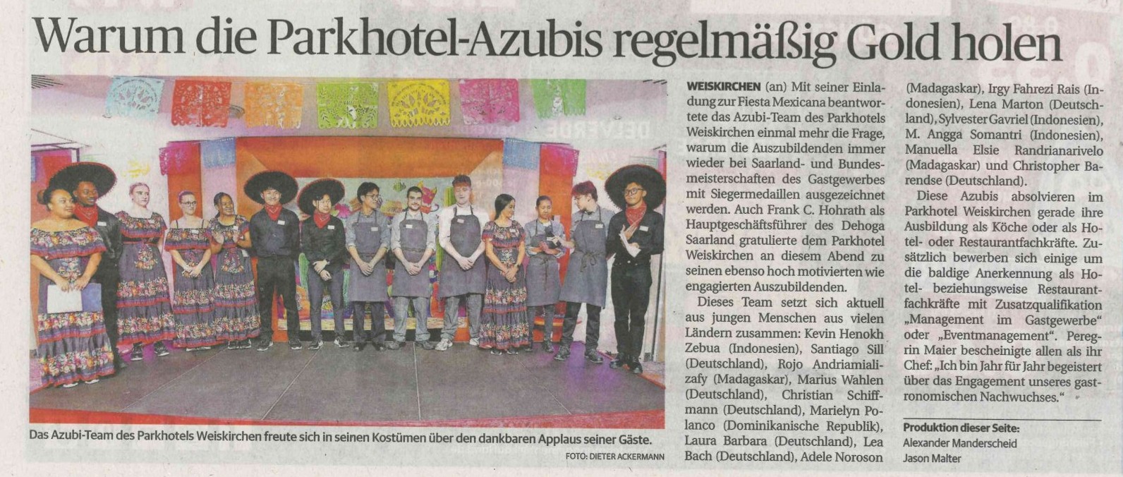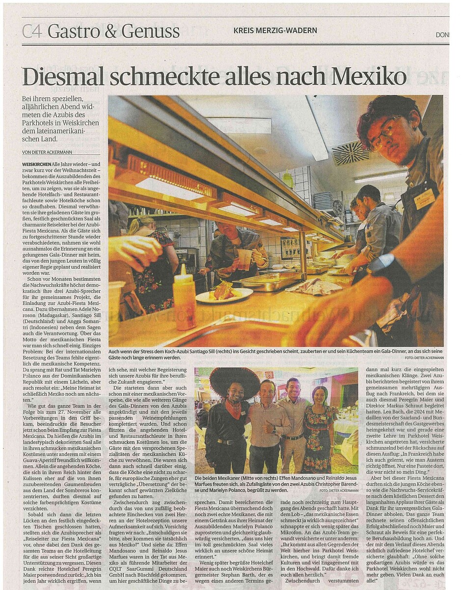 Presseartikel zum überragenden Erfolg der saarländischen Auszubildenden bei den Deutschen Jugendmeisterschaften und insbesondere von Elena Michely aus dem Parkhotel Weiskirchen
